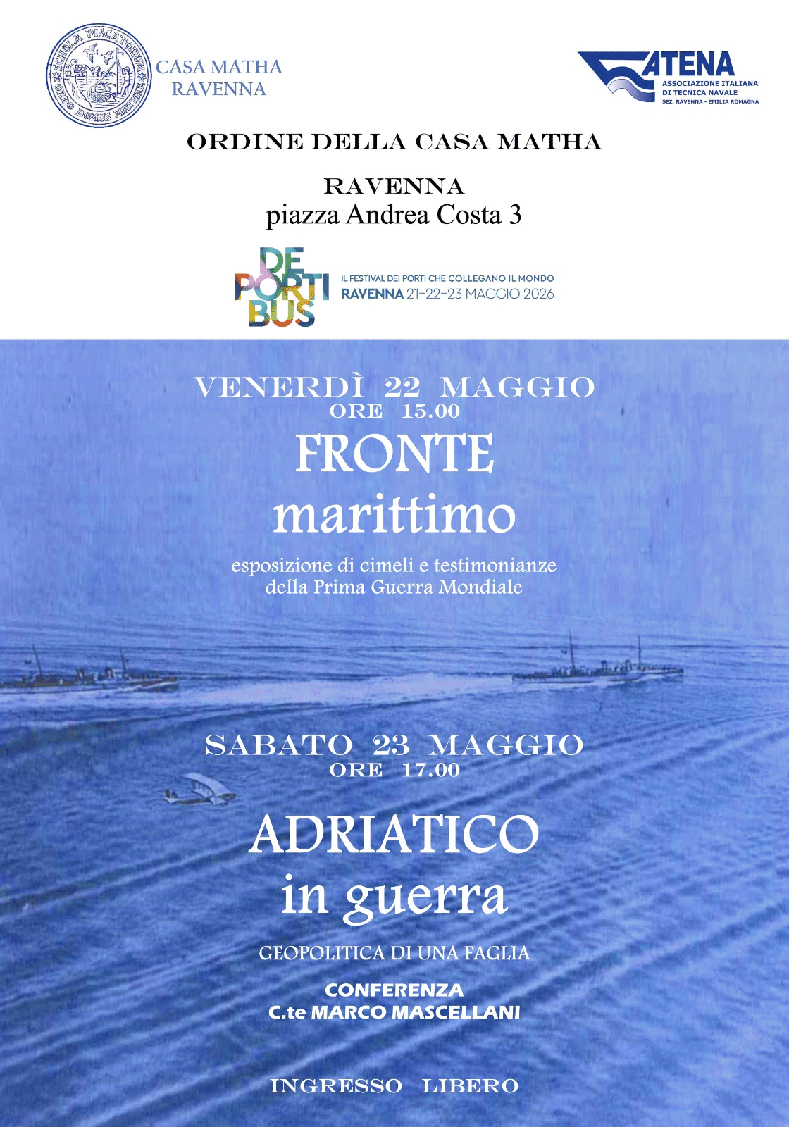 Fronte marittimo | Adriatico in guerra + Aggiungi a Google Calendar + iCal / Outlook export Data 22 - 23 05 2026 Ora 17:00 - 19:30 Categoria PROSSIMI APPUNTAMENTI